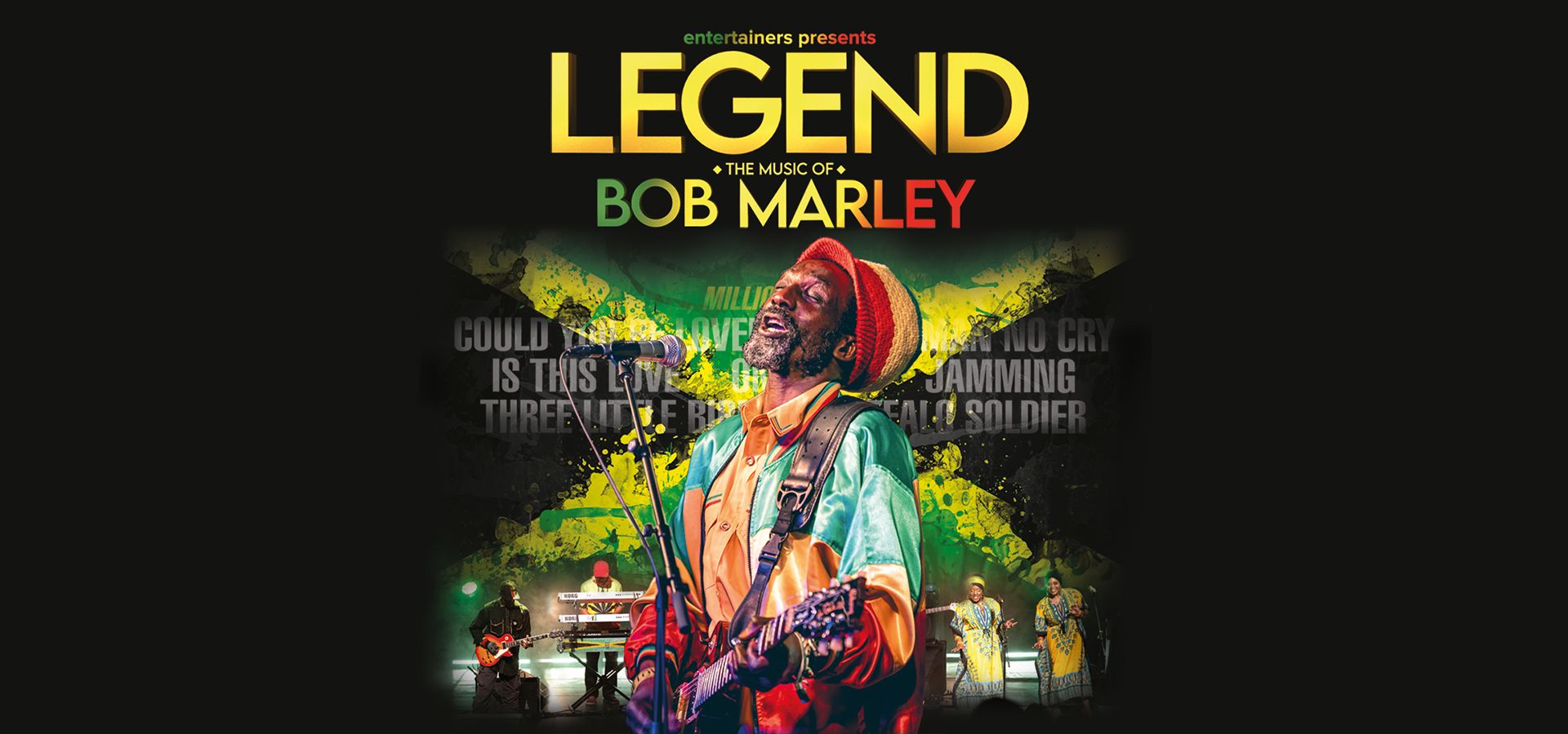 Legend – the music of Bob Marley is an unforgettable evening celebrating this musical icon in one fantastic stage show. Combining his superb, distinctive vocals with flawless musicianship, a supremely talented cast recreate the timeless hits Could You Be Loved, Is This Love, One Love, No Woman No Cry, Three Little Birds, Jammin’, Buffalo Soldier, Stir It Up, Get Up Stand Up, Exodus, Waiting in Vain, Satisfy My Soul, Iron Lion Zion, I Shot the Sheriff and many more reggae classics.