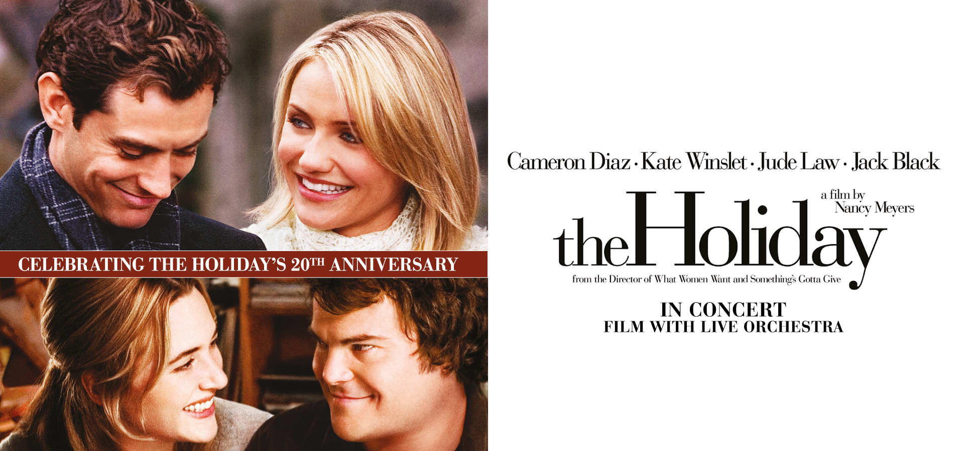 The Cherished Christmas romcom The Holiday (2006) is set to be presented live in concert this Christmas, throughout November and December, celebrating the film’s 20th anniversary!